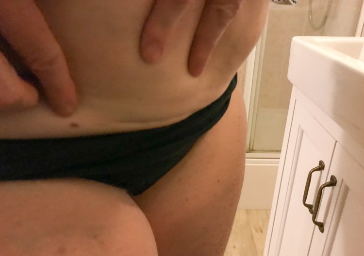 In terms of where I’m at in my emotional journey with it, I was thinking, it’s funny because you can barely see my scar now because my belly hangs over it.